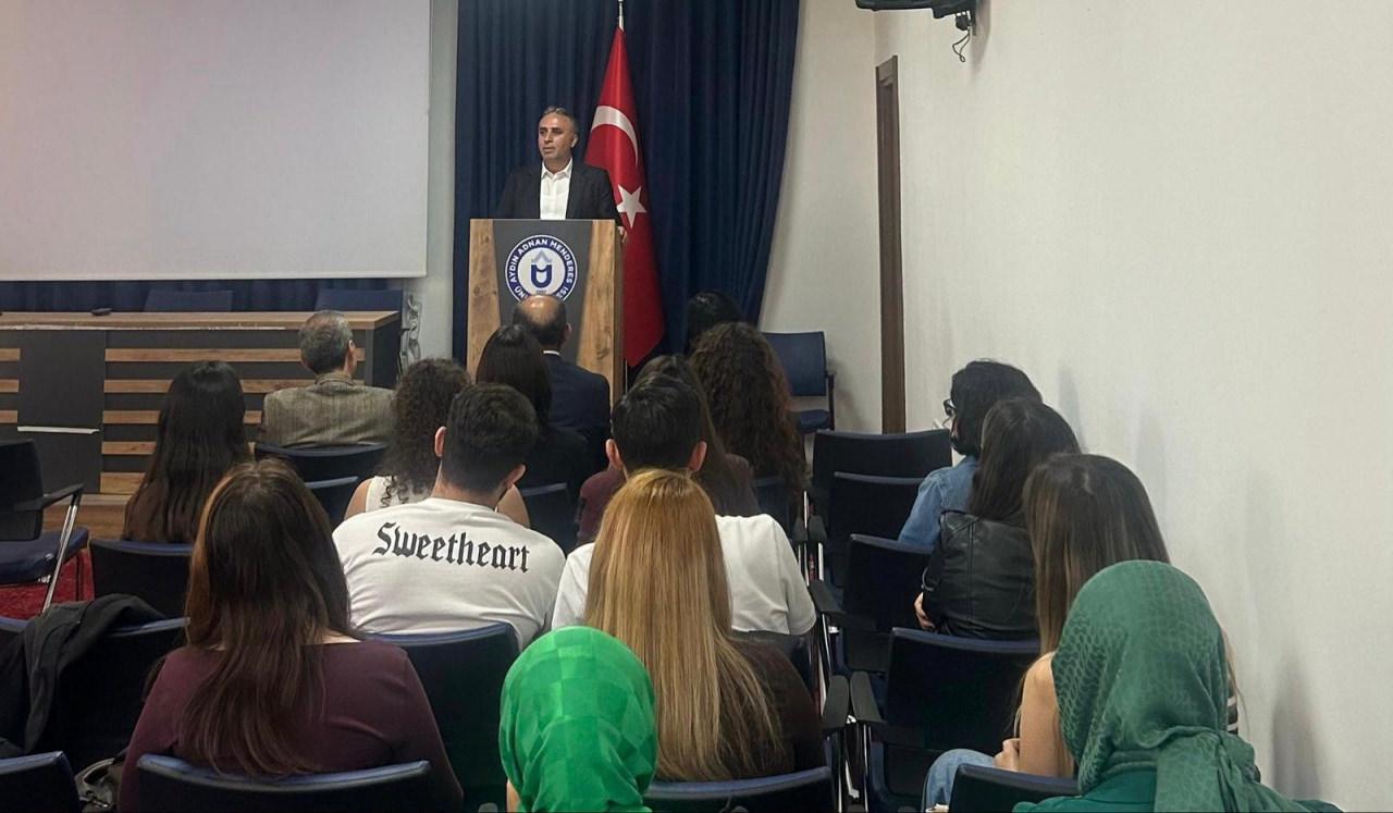 Üniversite öğrencilerinin yoğun ilgi gösterdiği programda kültür, medeniyet ve değerler ekseninde bir konuşma yapan Türkiye Yazarlar Birliği (TYB) İstanbul Şube Başkanı Yazar Mahmut Bıyıklı, “Gençlerimiz ve dilimiz bizim manevi vatanımızdır. Fiziki vatanımızı muhafaza etmek için nasıl savunma sanayine yatırımlar yapıyorsak manevi vatanımız olan dilimize de aynı hassasiyetle sahip çıkmalıyız ifadelerini kullandı.
